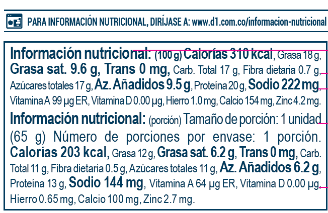 Inicio / Información Nutricional / Snack Queso con Bocadillo Latteria 60 G